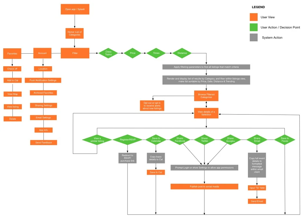 There’s a remarkable number of amazing learning opportunities in the Bay Area. Searching for them can be time-consuming and missing out is frustrating. The apps and websites that exist overwhelm users with irrelevant listings, aren’t customizable enough, and lack the alerts that busy users need. My goal was to make finding workshops and classes fast, easy and fun while giving users an experience of relief, gratitude and fun.