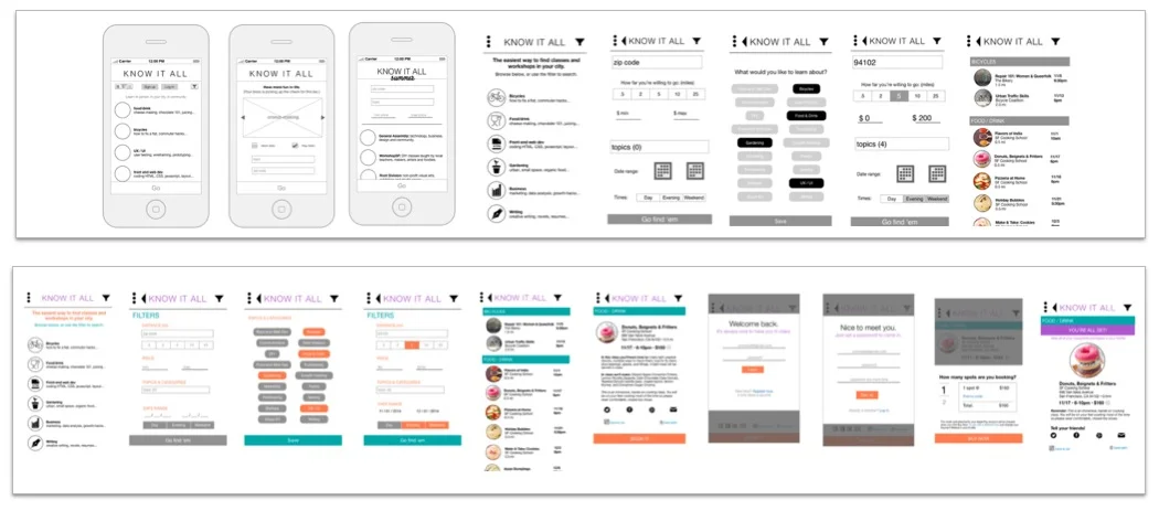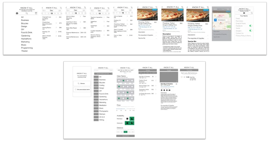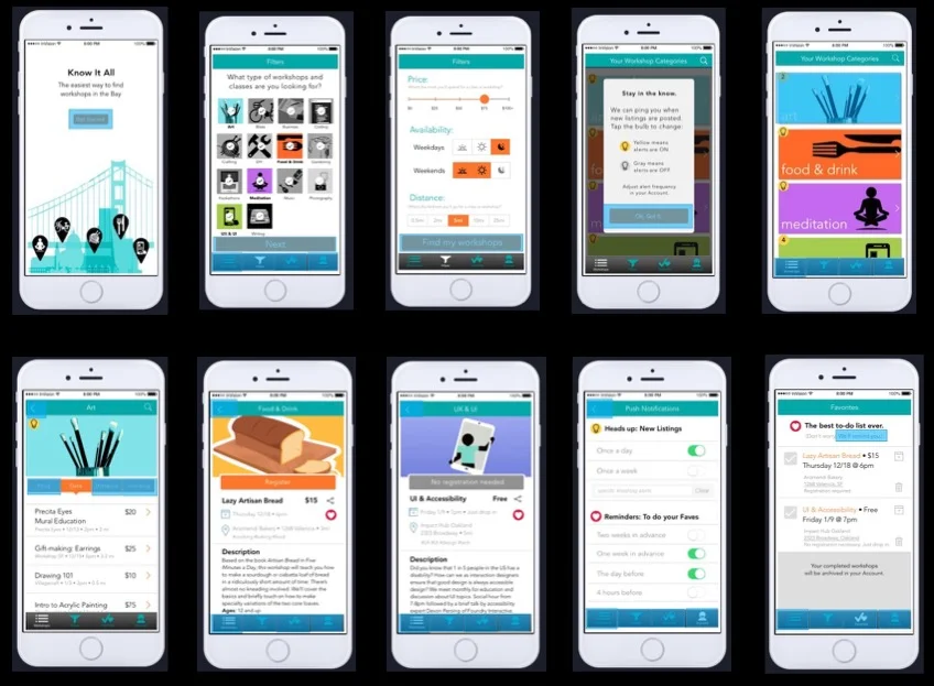 Know It All is a mobile app that I conceived of and designed to take the frustration out of finding workshops and classes in the Bay Area.